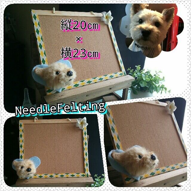 羊毛フェルトを使用し、ペットのお顔をお作りし、コルクボードにお付けする商品になります。